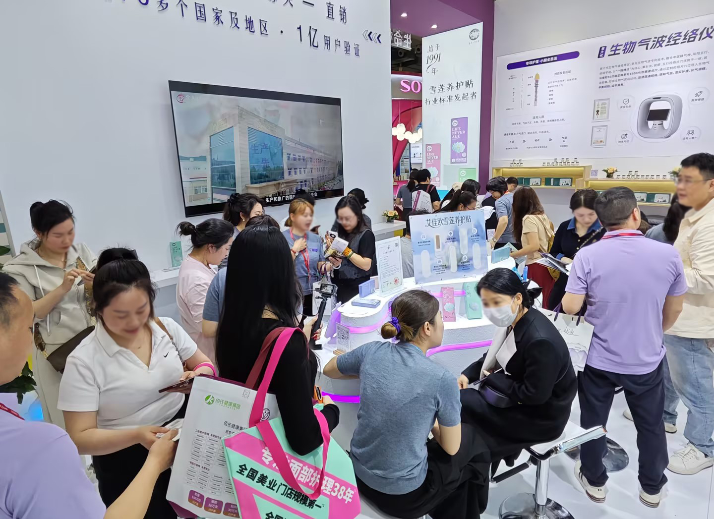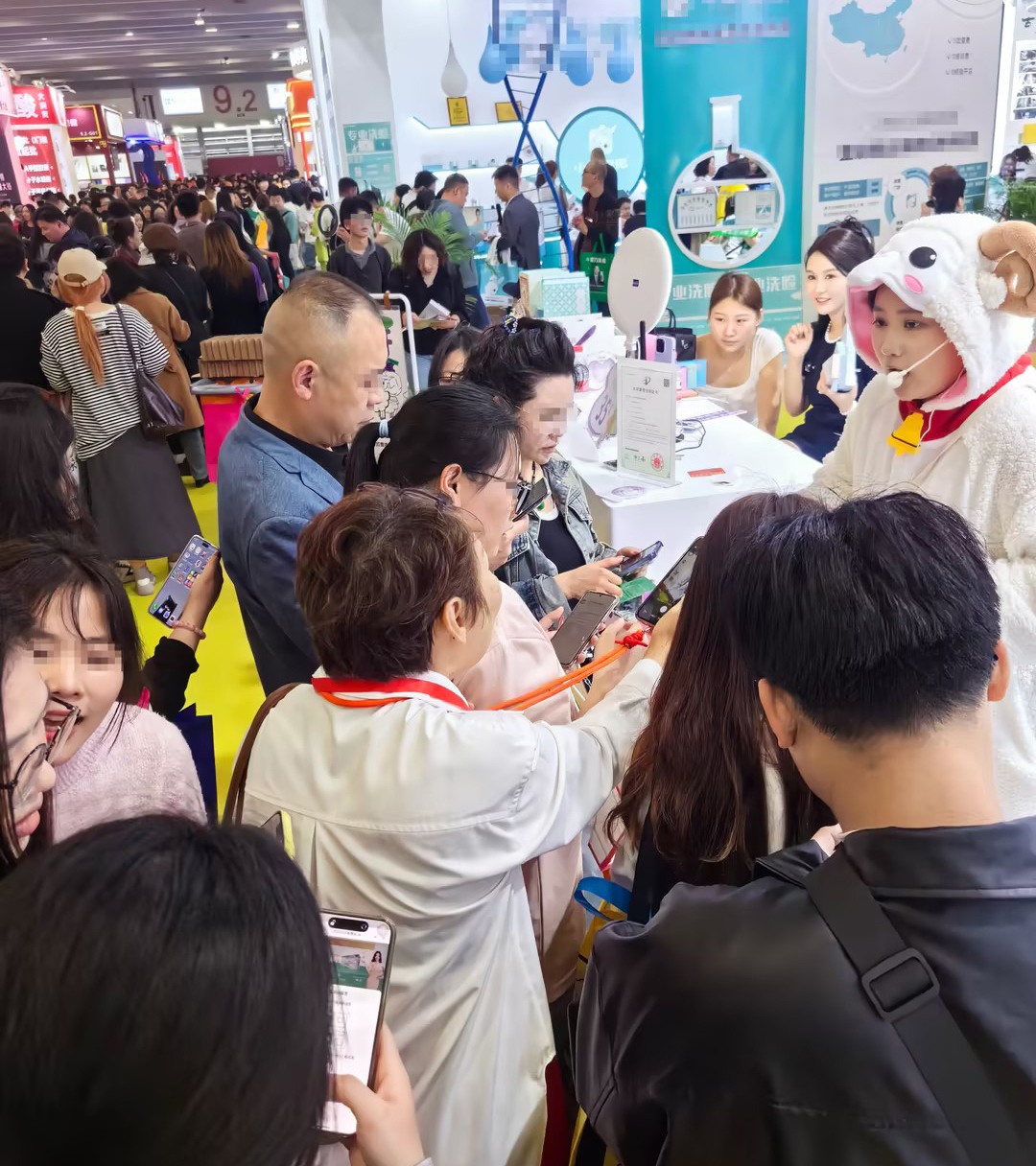 通道被围得水泄不通,展位内人山人海,场面之壮观,堪称美博会历史上的罕见盛况。